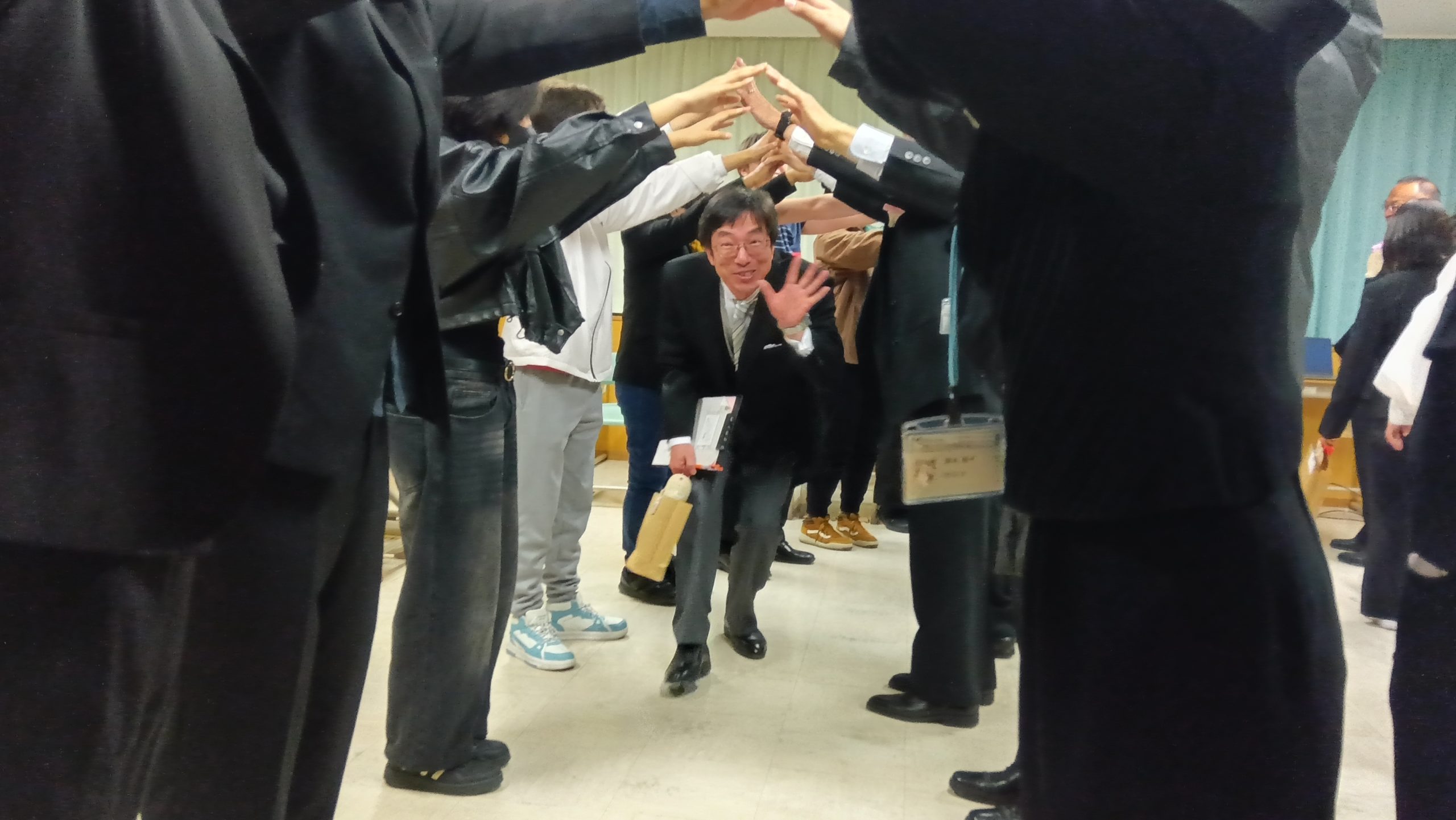 3月で三島教室から離れる生徒、職員への感謝の気持ちを伝え、新たな出発を祝う「フェアウェルセレモニー」がありました。セレモニーの中で、お別れする生徒や先生方から温かなメッセージが送られると、涙ぐむ生徒や教職員、保護者の姿も見られました。最後はふじのくに中学校で学びを続ける生徒、スタッフでアーチを作り、一言一言声を掛け合いながら見送りました。