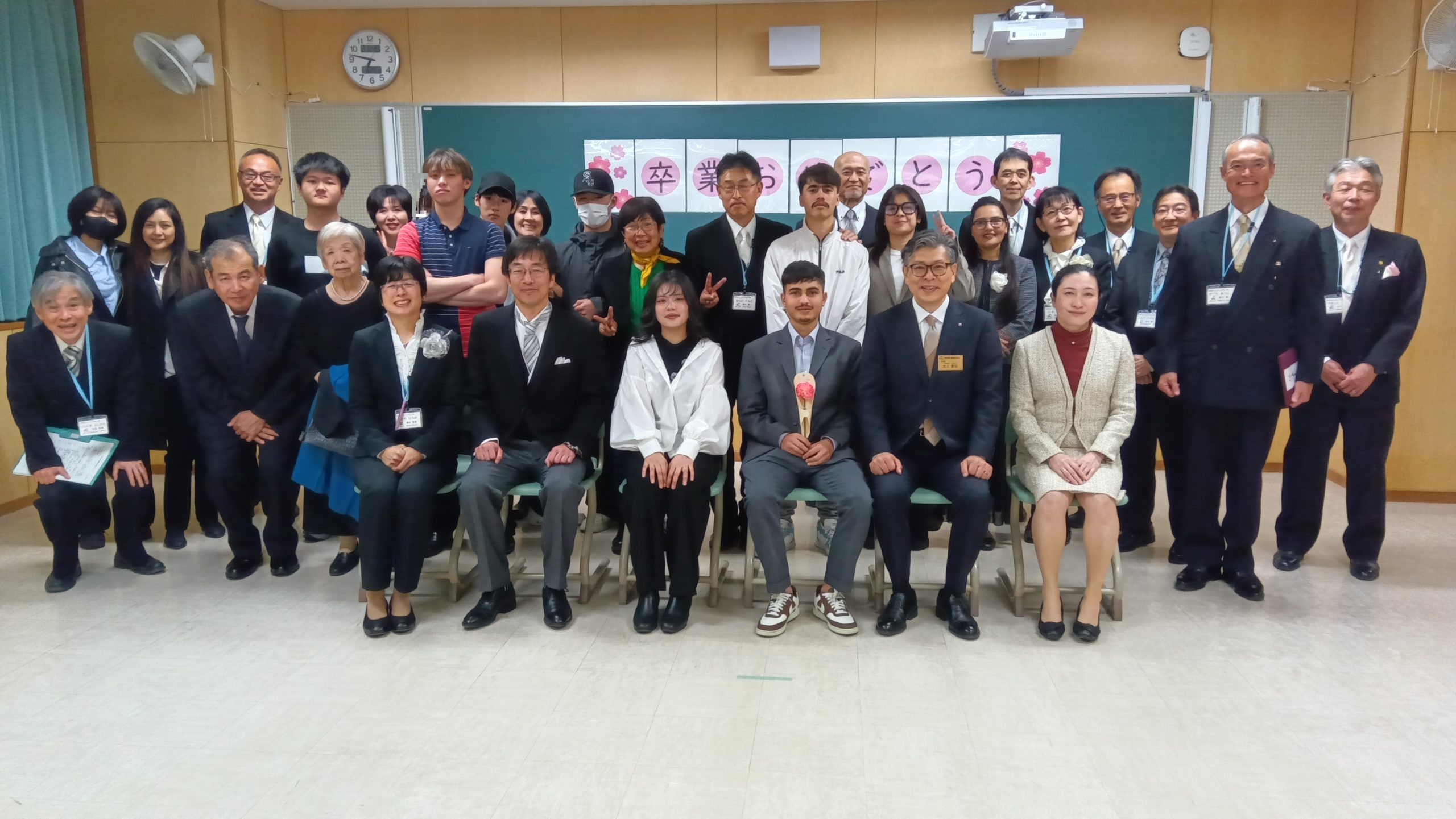 主催者である池上教育長さま、前澤教育部長さまをはじめ、多くの来賓の皆様がお祝いに来てくださいました。温かい拍手に送られて、3人の生徒は三島教室を巣立ちました。