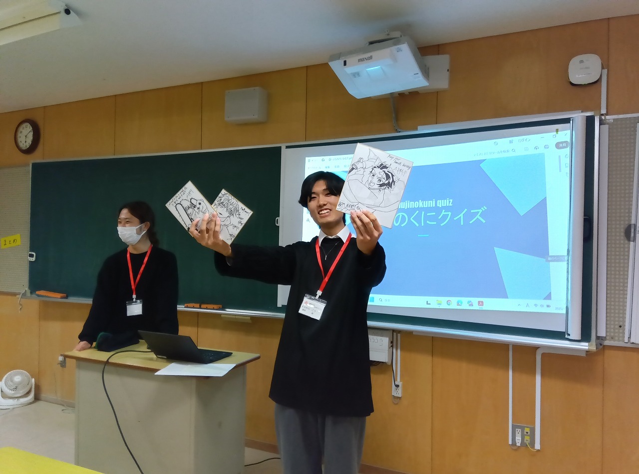 にほんだいがくの がくせい ぼらんてぃあが、くいず たいかいを やって くれました。