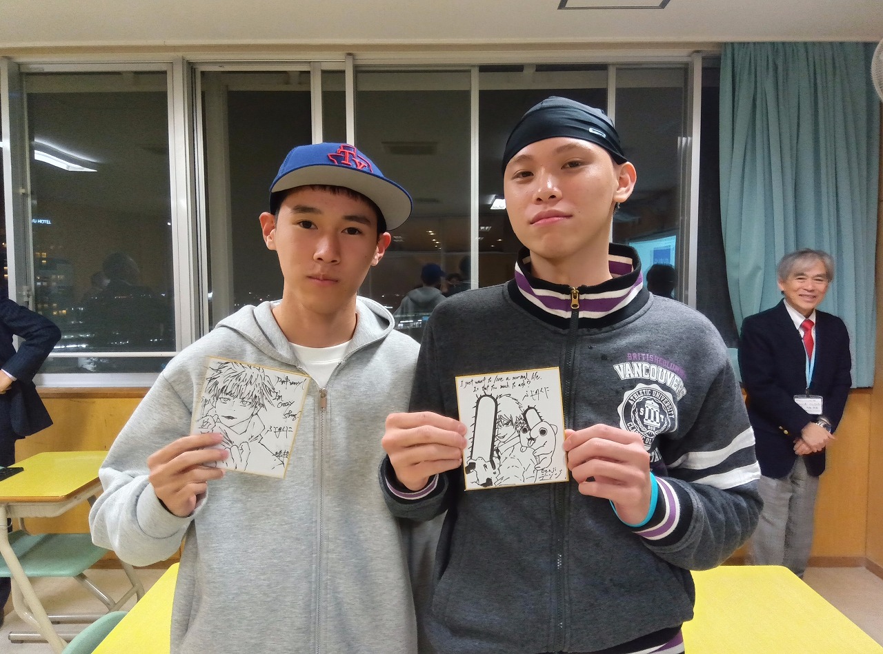 学生さんが、手作りのアニメイラストの色紙をプレゼントに用意してくれました。