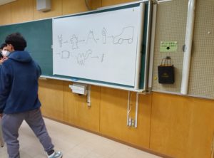 ユーダイモニアタイムの時間に、日大国際関係学部のボランティアの学生さんたちが、「絵しりとり」を計画してくれました。