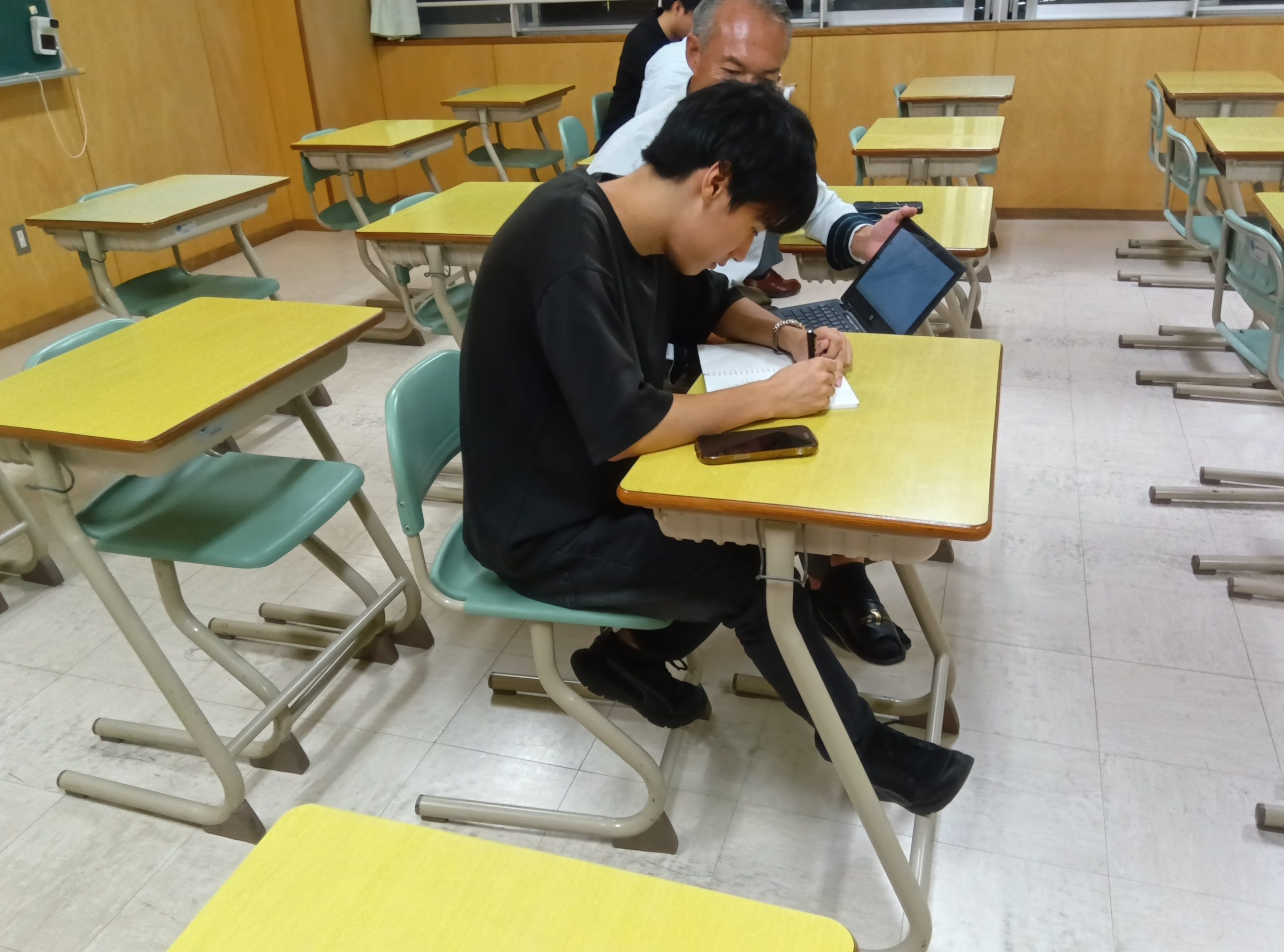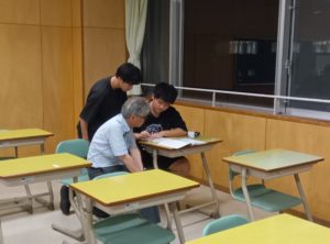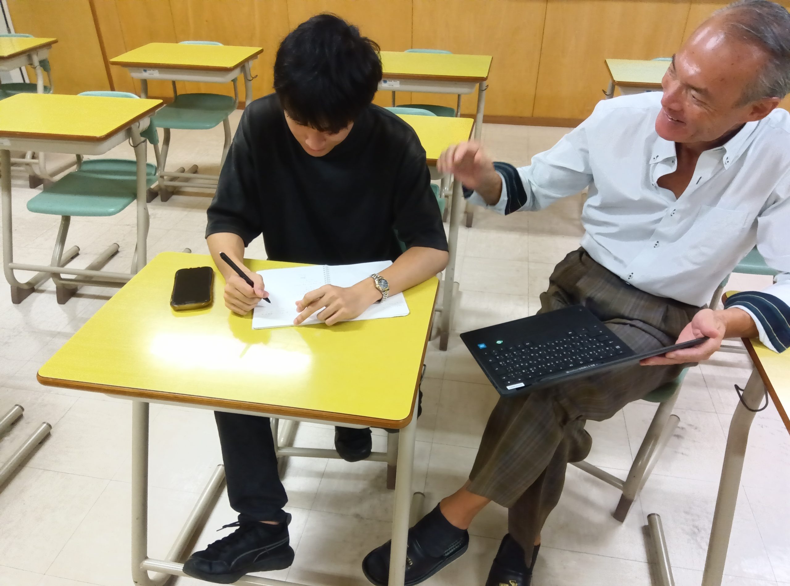 日本語の勉強をする生徒、自分の将来のために数学を勉強する生徒、仕事で疲れて身体を休める生徒、教員と一緒にゲームを楽しむ生徒、いろいろな生徒がいます。