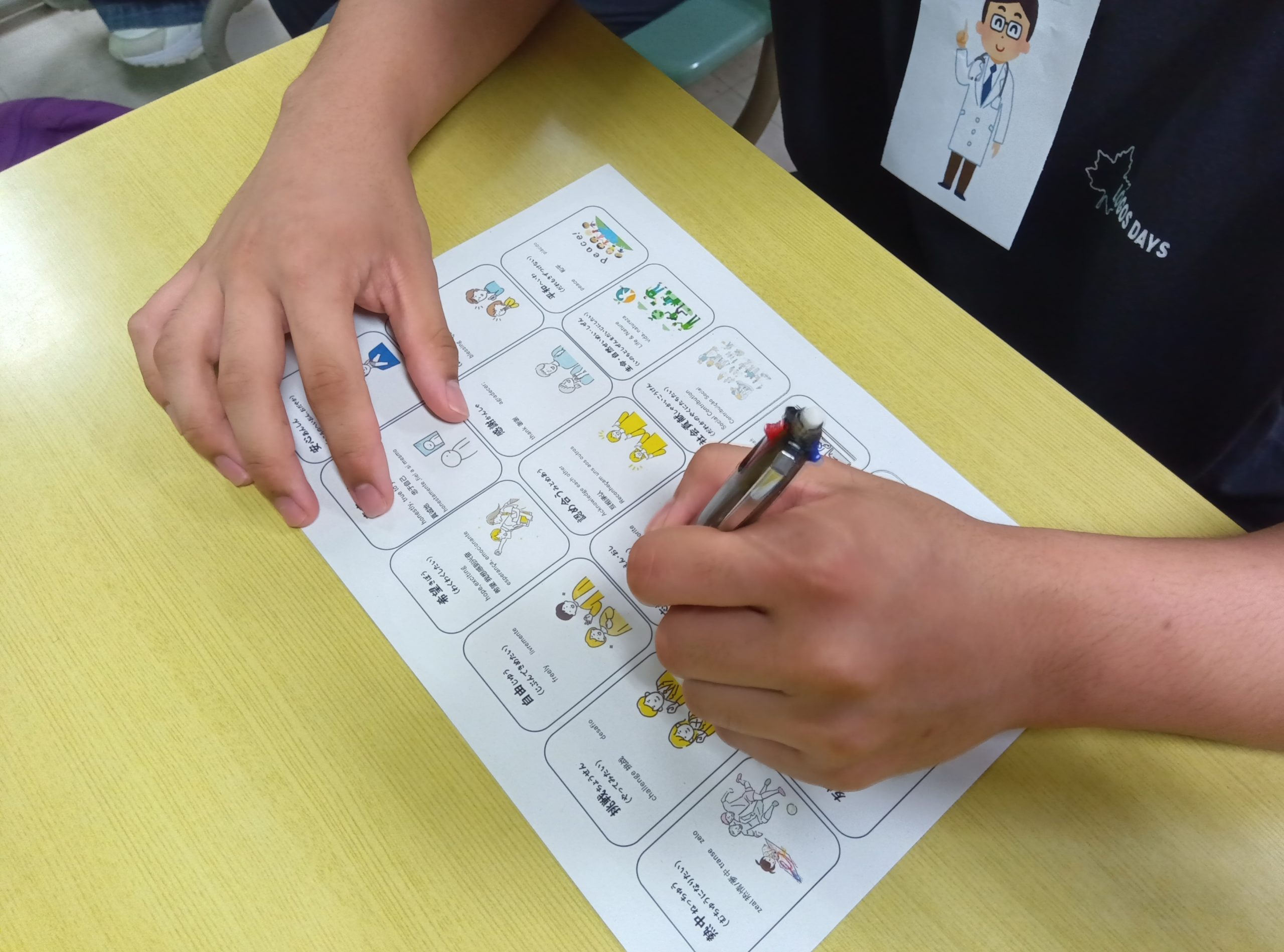 けんこうこうざを おこないました。てーまは、「うぇる びーいんぐ」です。ぺあで せなかに つけた どうぶつの なまえを じぇすちゃーで あてました。ぷりんとの「あい」や「かんしゃ」などの ことばから すきなものを 3つ えらんだり、あいますくを した ともだちを やさしく ささえたり しました。じゅうじつした かつどうに なりました。