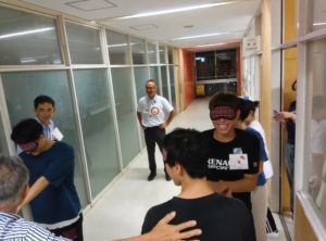 健康講座を行いました。テーマは、「ウェルビーイング」です。ペアで背中に付けた動物の名前をジェスチャーで当てました。プリントの「愛」や「感謝」などの言葉から好きなものを3つ選んだり、アイマスクをした友だちを優しく支えたりしました。充実した活動になりました。