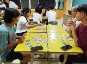 グループになって、トランプの「神経衰弱ゲーム」も楽しみました。同じカードが出たときには、大きな声があがっていました。